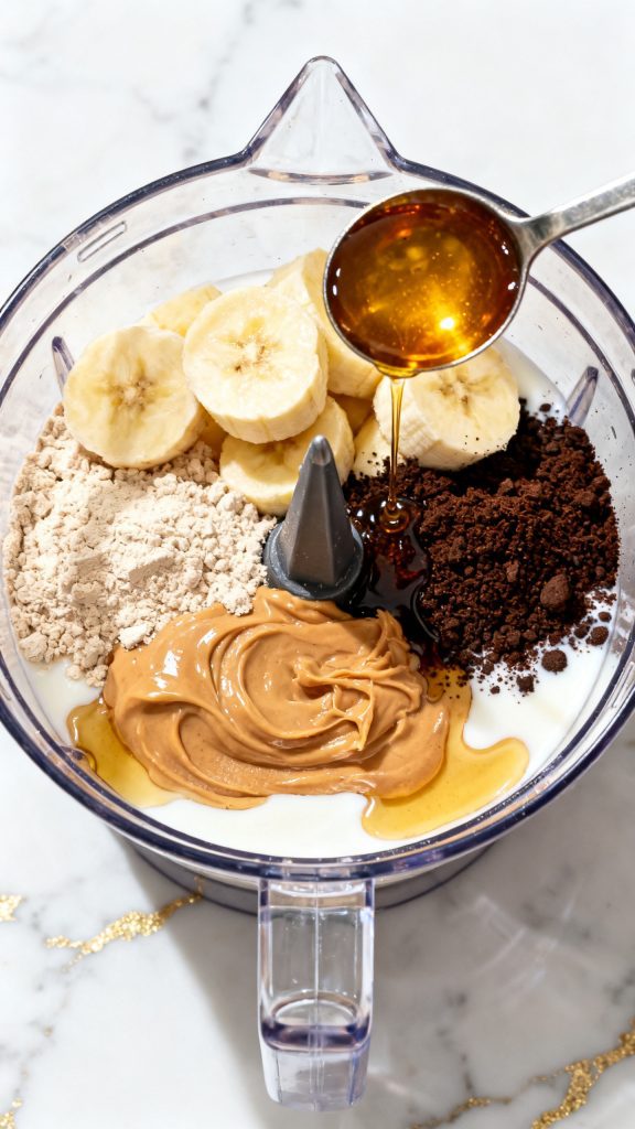 The frozen banana gives the shake its thick, creamy texture—just like ice cream, without dairy. The protein powder adds structure and staying power, while the fat in peanut butter makes it satisfying. Instant espresso gives strong flavor without watering it down.