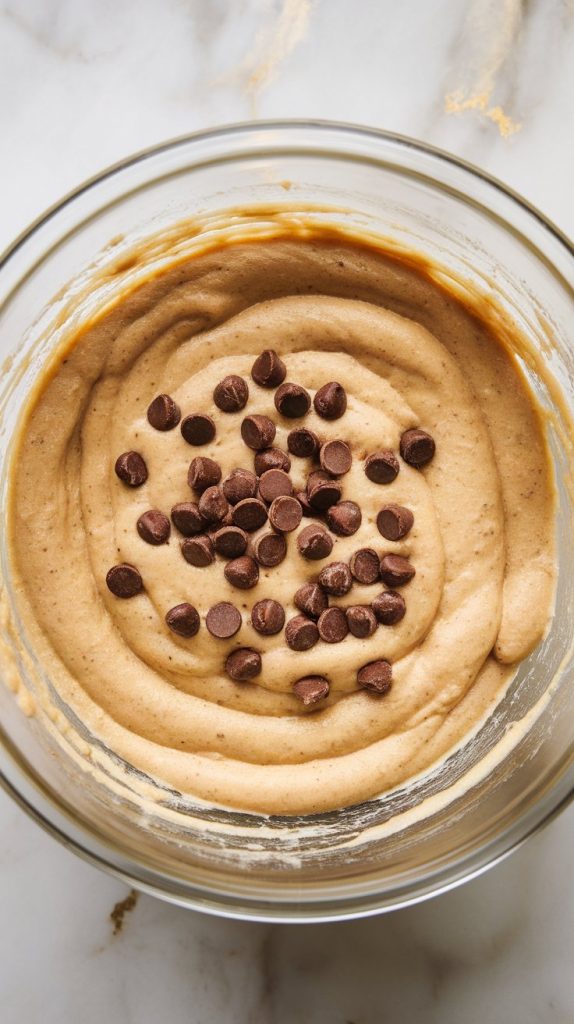 Gently fold in 1/3 cup mini chocolate chips. Don’t overmix.