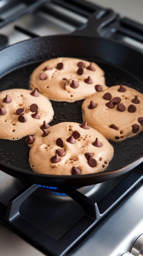 - Add extra chocolate chips on top of each pancake while they cook for extra gooey bites.
