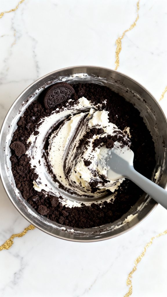 - Use room temp cream cheese—it blends smoother with the crushed Oreos.