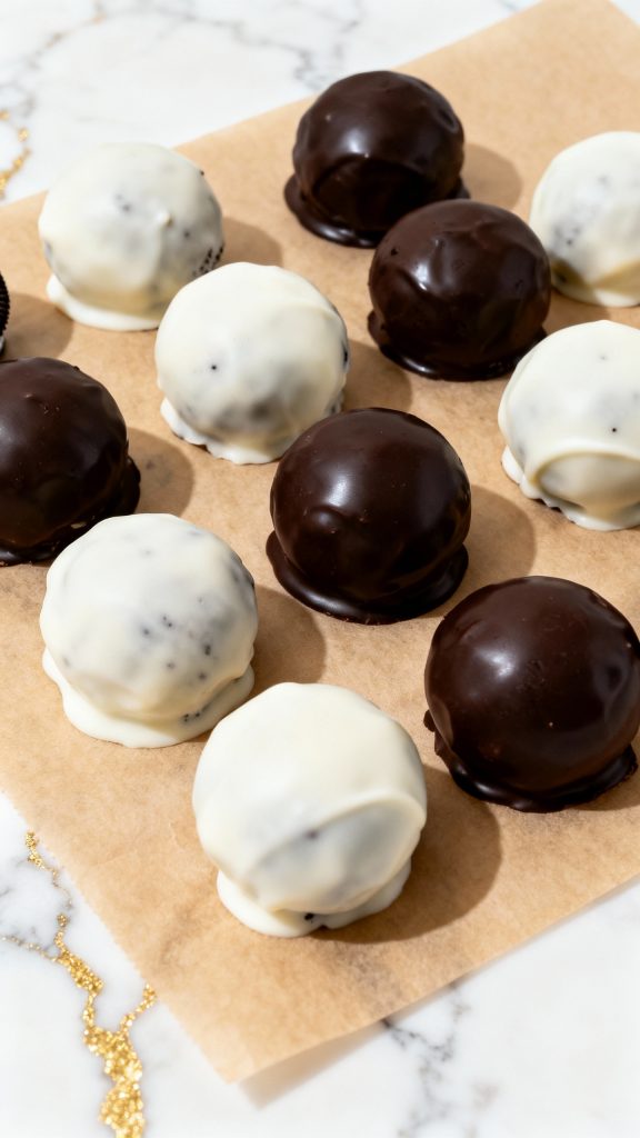 Place the tray of Oreo balls in the freezer for 20–30 minutes until firm.