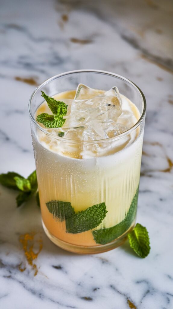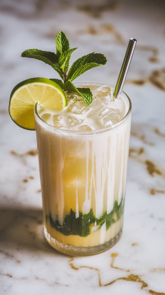 This drink is the best of both worlds—it’s creamy like a piña colada but fizzy and fresh like a mojito.