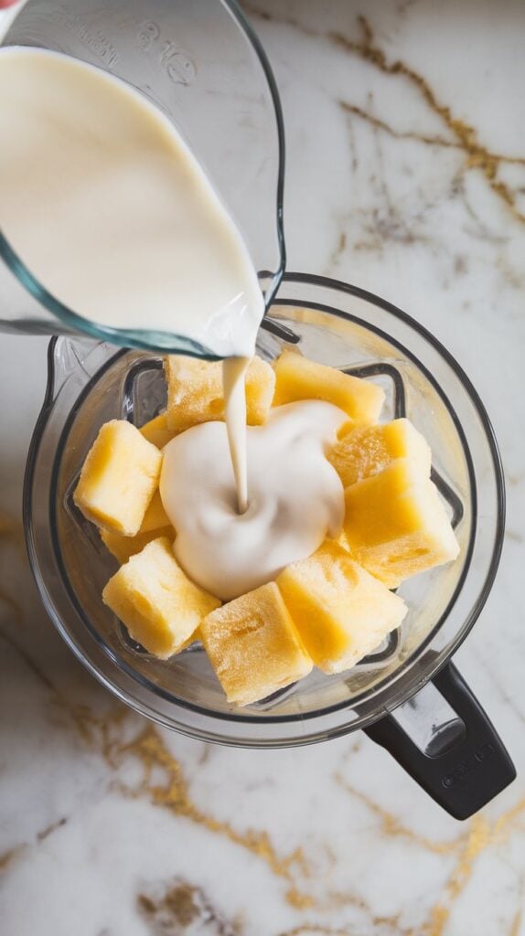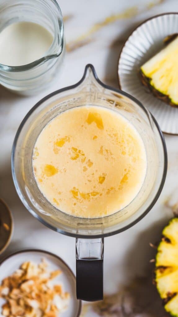 What to do: Blend on high for 30–40 seconds until you have a thick, creamy, pale yellow slush. Scrape the sides as needed.