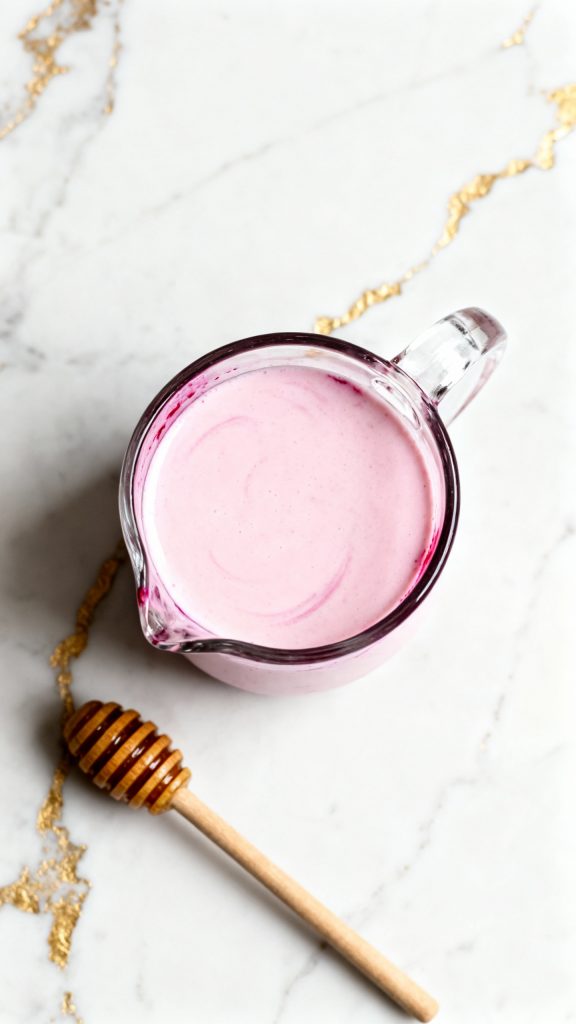 In a small pitcher or bowl, combine ¾ cup coconut milk with 1–2 tsp beet juice (or pink food coloring) and 1–2 tsp honey or sugar. Whisk until smooth and evenly pink.