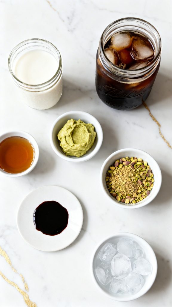 The best part is how simple it is. You only need a few ingredients and about 5 minutes. The pistachio cream sits on top of the cold brew and slowly mixes into the coffee, making every sip creamy and delicious.