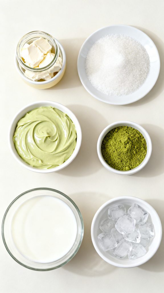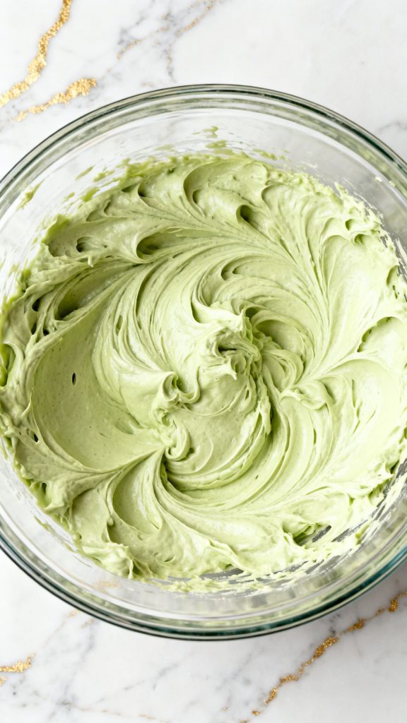 Matcha contains fine tea particles that stay suspended, giving a smooth texture. The fat from cream cheese and heavy cream stabilizes the foam, while sugar helps it hold structure. Pistachio cream adds both flavor and richness, balancing the slight bitterness of matcha.