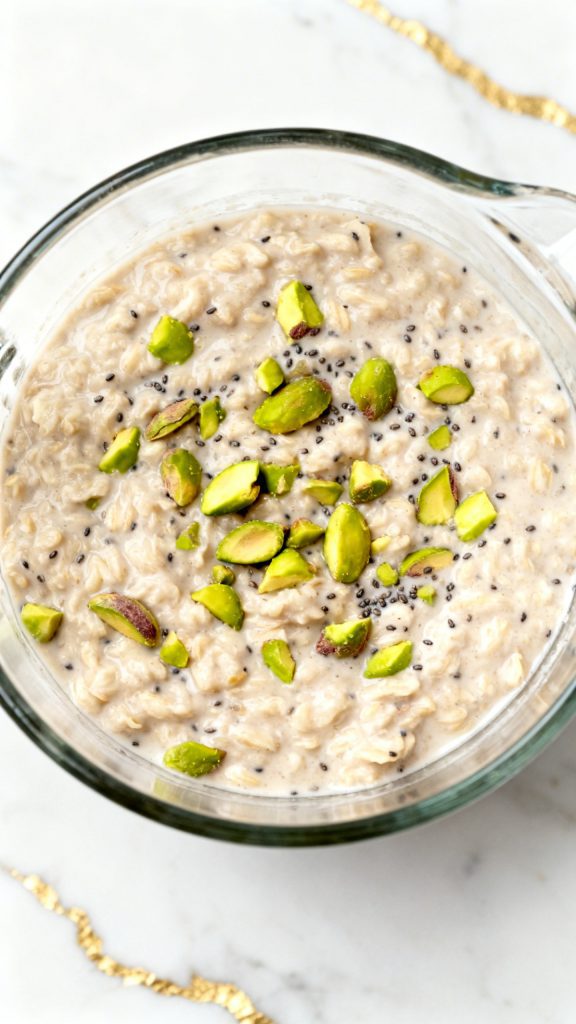 Creamy oats, nutty pistachios, and just a touch of sweetness—it’s simple but really satisfying.