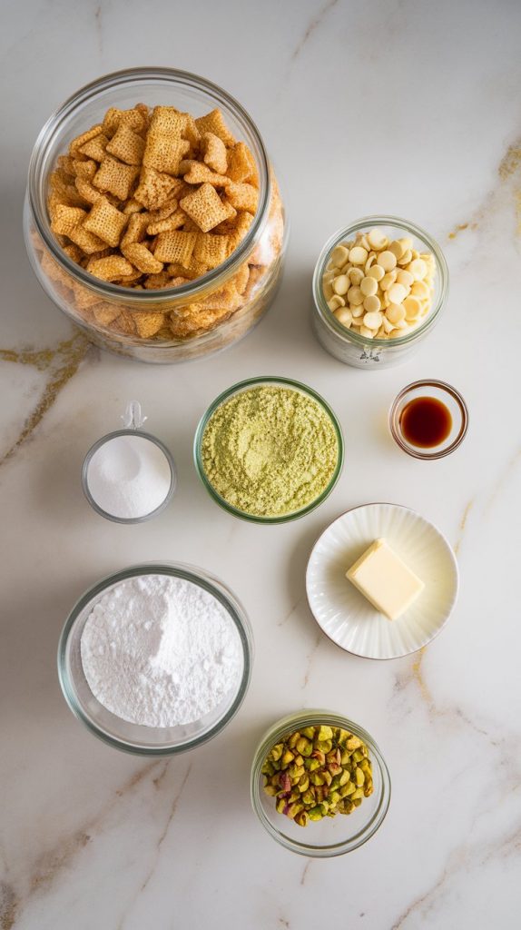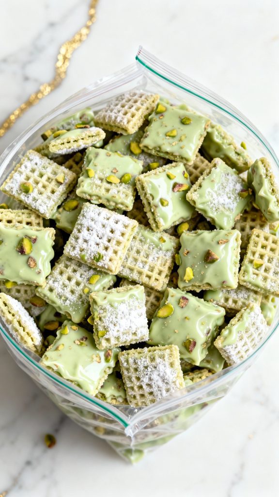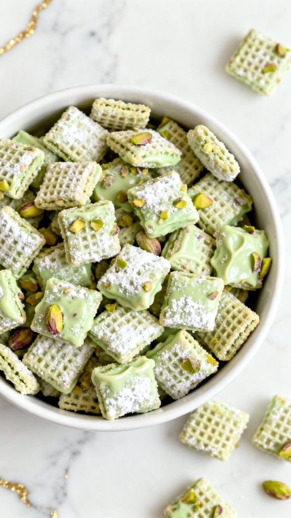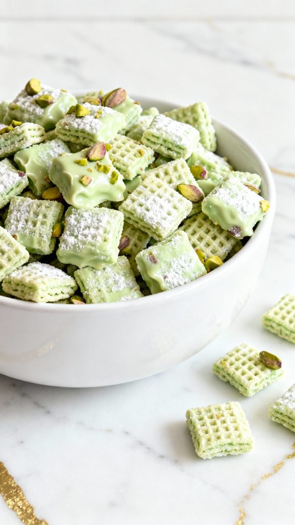 Pistachio Puppy Chow is sweet, salty, and full of crunch — a fun twist on the classic treat.