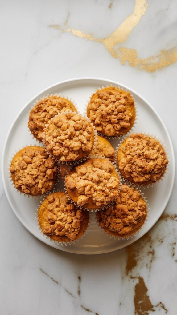 Line a muffin tin with paper liners. Spoon batter evenly into the cups, then sprinkle crumble topping generously over each.