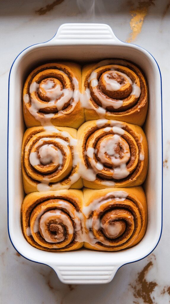 Mix 1 cup powdered sugar, 2–3 tbsp milk, and 1/2 tsp vanilla until smooth. Drizzle over warm rolls and serve.