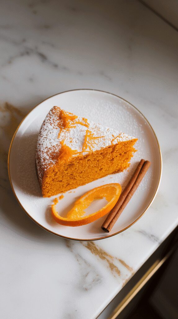 This cake has a light orange flavor mixed with pumpkin and warm spices. It’s soft, easy to slice, and full of fall flavor without being too rich. The balance of citrus and spice makes it feel fresh and cozy.