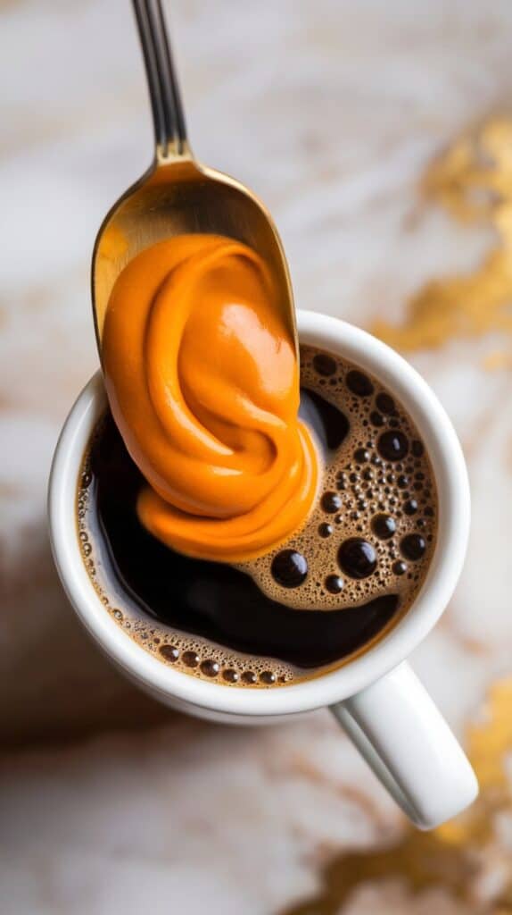 Pour the pumpkin mixture into your mug of hot coffee. Stir well until fully dissolved and smooth.