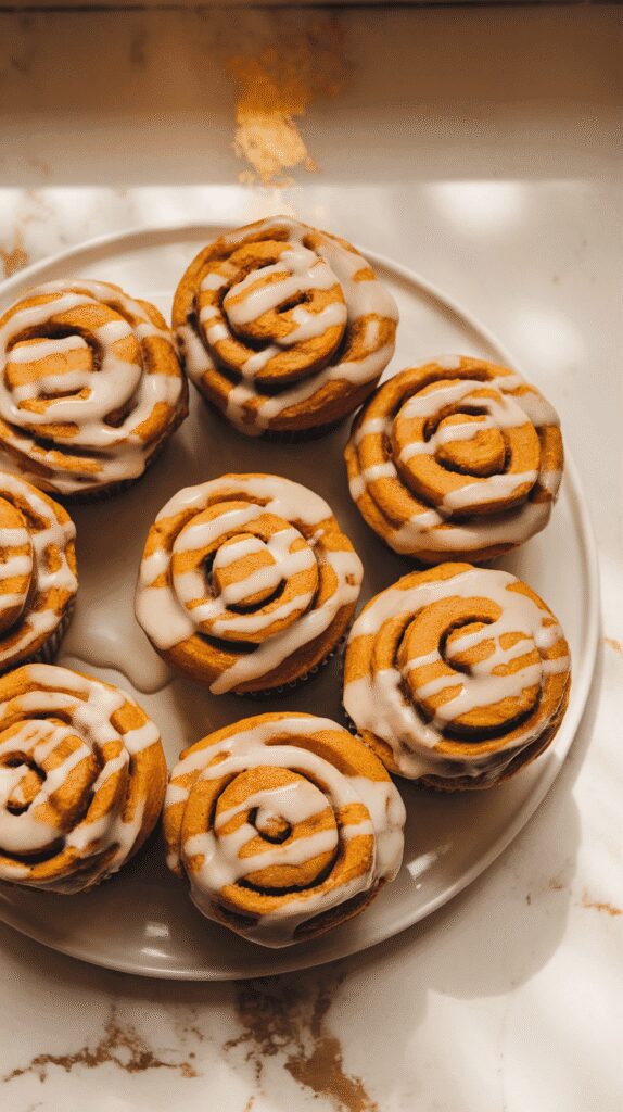 This recipe brings cinnamon roll vibes to pumpkin muffins. Swirled with cinnamon sugar and topped with icing, they’re sweet, soft, and extra cozy without being too rich.