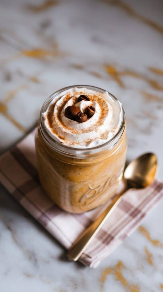 These Pumpkin Spice Latte Overnight Oats are creamy, cozy, and packed with warm spices and that little hit of coffee that makes mornings better.