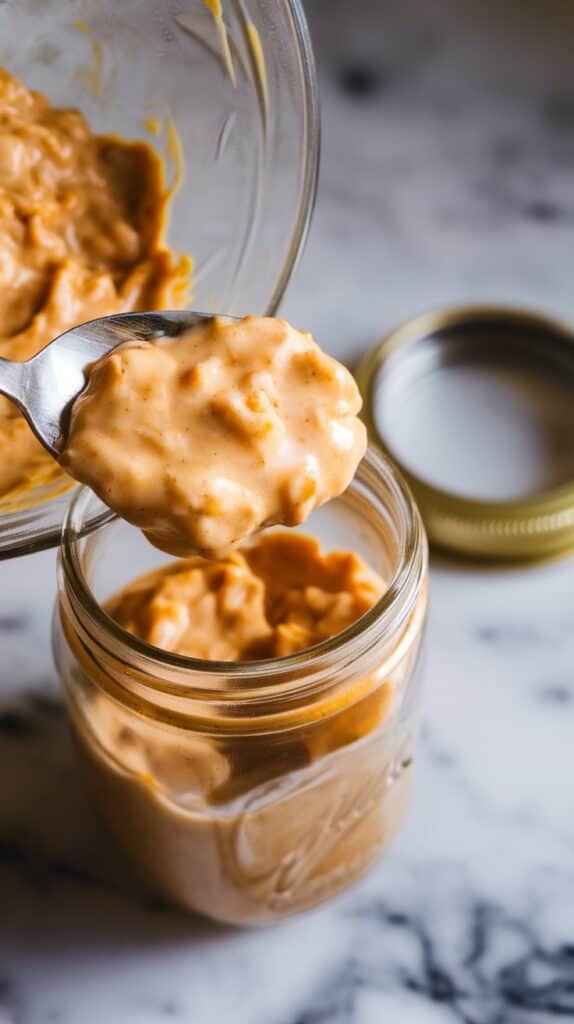 Spoon the mixture into a mason jar or airtight container and seal with a lid.