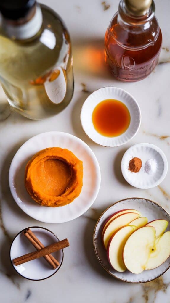 This drink has become my signature fall party drink. I love how easy it is to make but still feels special. The pumpkin adds creaminess, the wine keeps it light, and the cinnamon apples? Chef’s kiss.