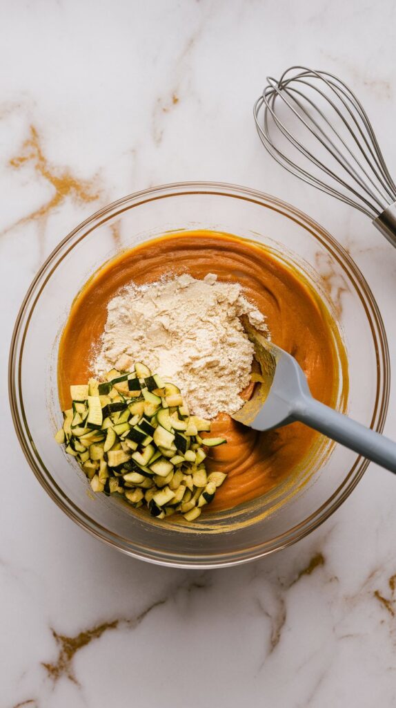 Gradually stir the dry ingredients into the wet mixture until just combined—don’t overmix.