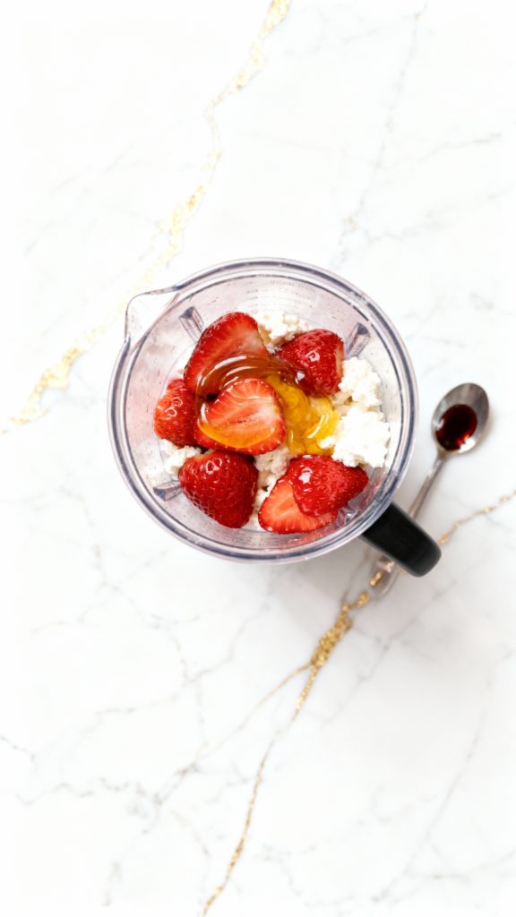 Blending cottage cheese breaks down the curds and transforms it into a super smooth base. Strawberries add natural sweetness and color. The protein in cottage cheese makes it thick and satisfying, and honey helps balance the tang of the cheese.