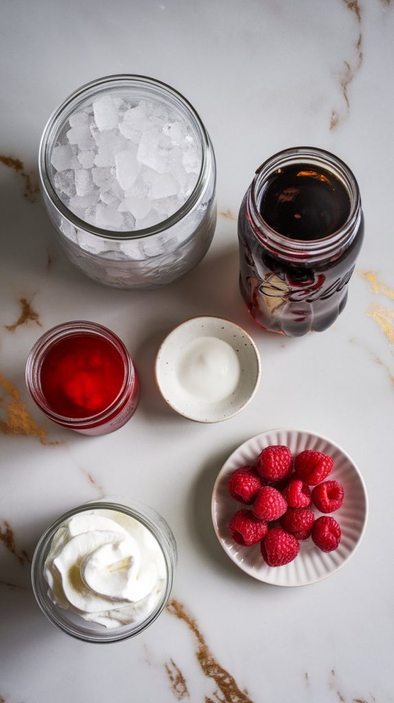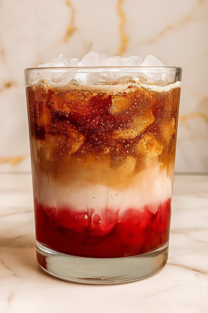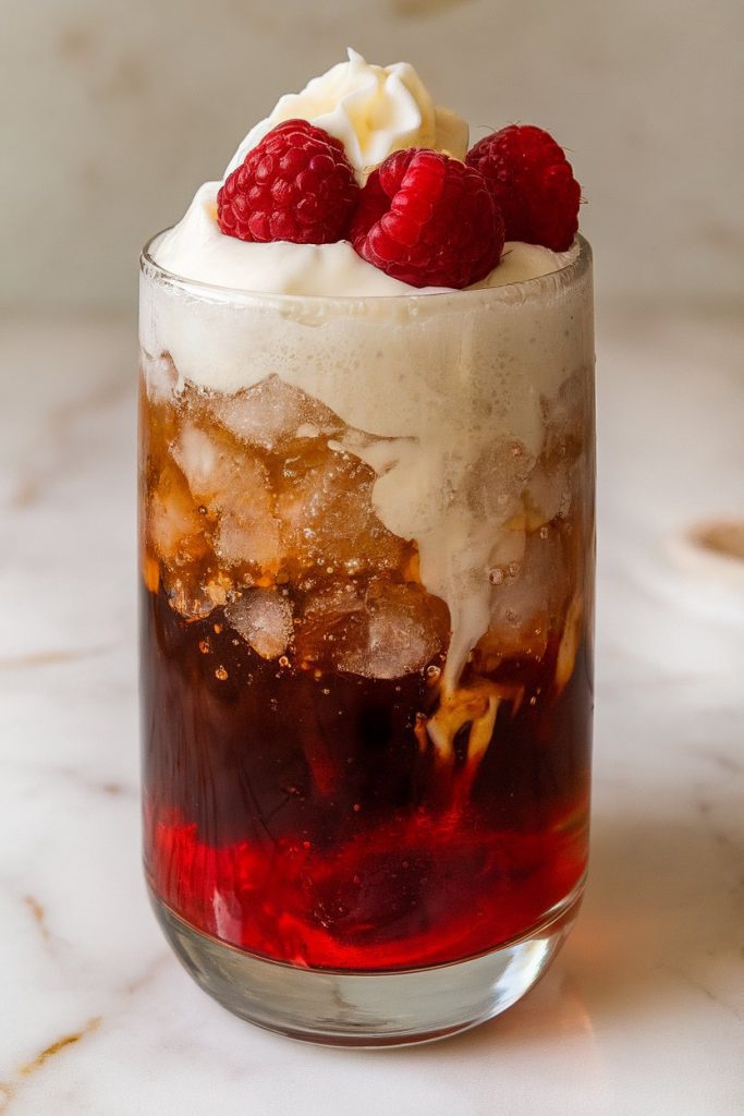 This drink works because the cold soda reacts with the dairy in the creamer to create a creamy, fizzy texture. The raspberry syrup sinks to the bottom thanks to its higher sugar content, creating a gorgeous layered effect. Crushed ice chills the drink quickly and gives you that satisfying slushy soda shop feel.