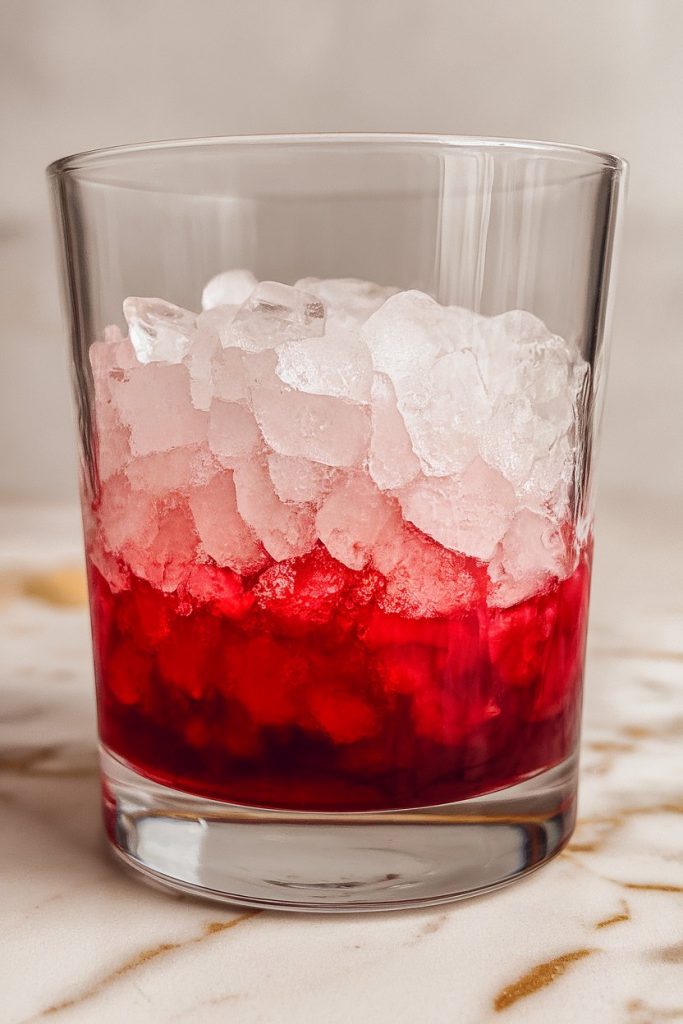 Add 1/2 cup of crushed ice to the bottom of your glass.