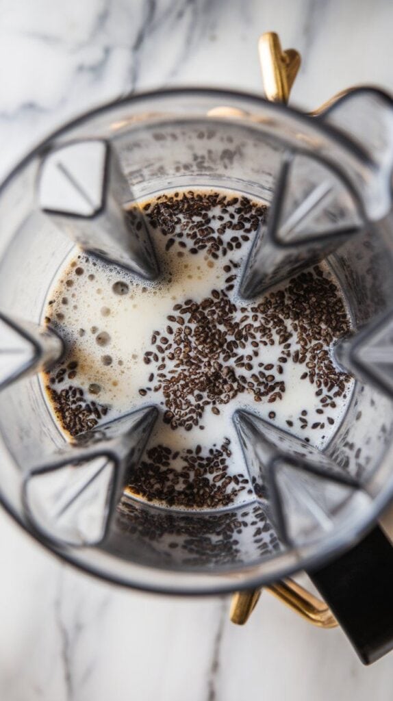Add toasted sesame seeds and milk to a blender. Blend until smooth and creamy.