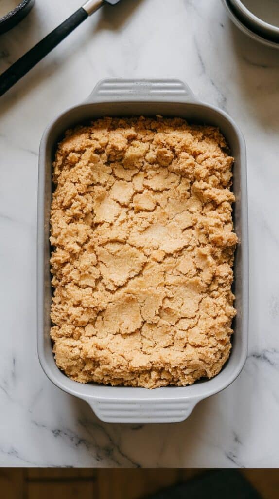 Press the crust mixture evenly into a parchment-lined 9×13″ pan. Bake at 350°F (175°C) for 15 minutes, or until lightly golden.