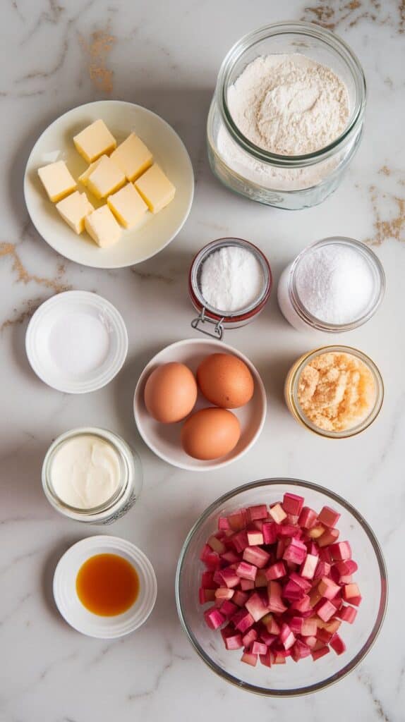 - 3 cups rhubarb, diced (fresh or thawed if frozen)