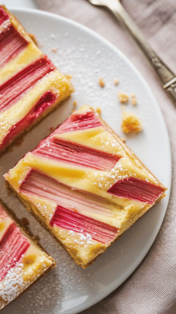These rhubarb custard bars are soft, buttery, and perfectly tart. They’re like a pie and a lemon bar had a spring baby. I love them fresh from the fridge on a warm day.