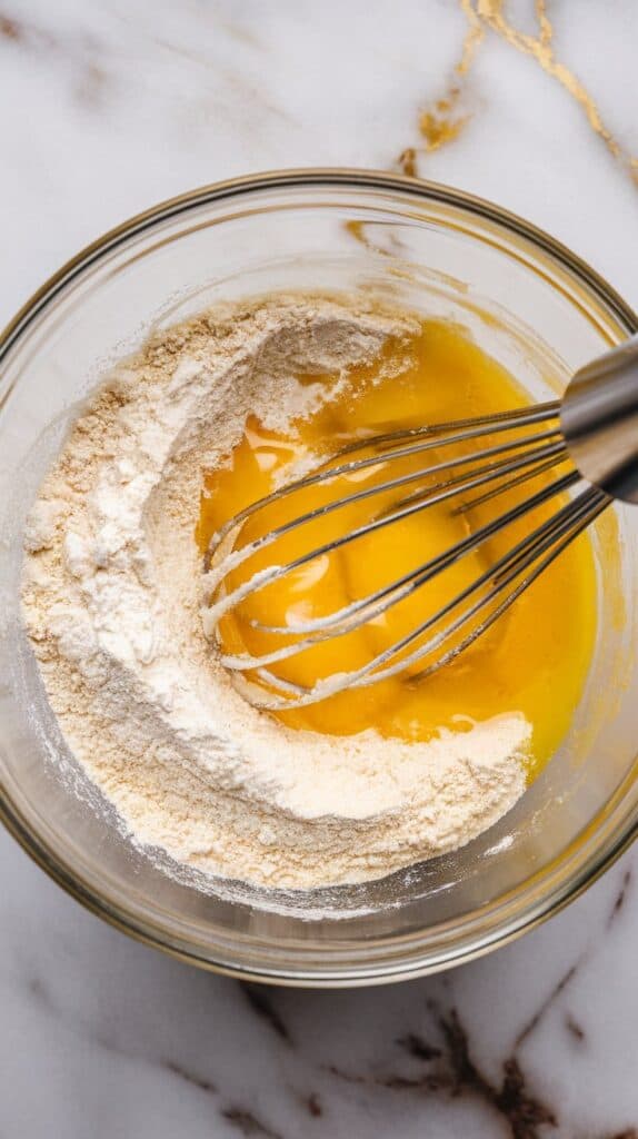While the crust bakes, whisk together 4 large eggs, 1¾ cups granulated sugar, ½ cup all-purpose flour, and ½ teaspoon salt in a large bowl until smooth.