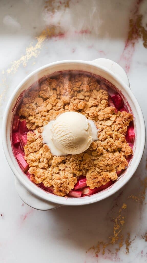 I grew up with a rhubarb plant in the backyard, and every spring we’d bake crumbles like this. The first rhubarb of the season always felt like a celebration.