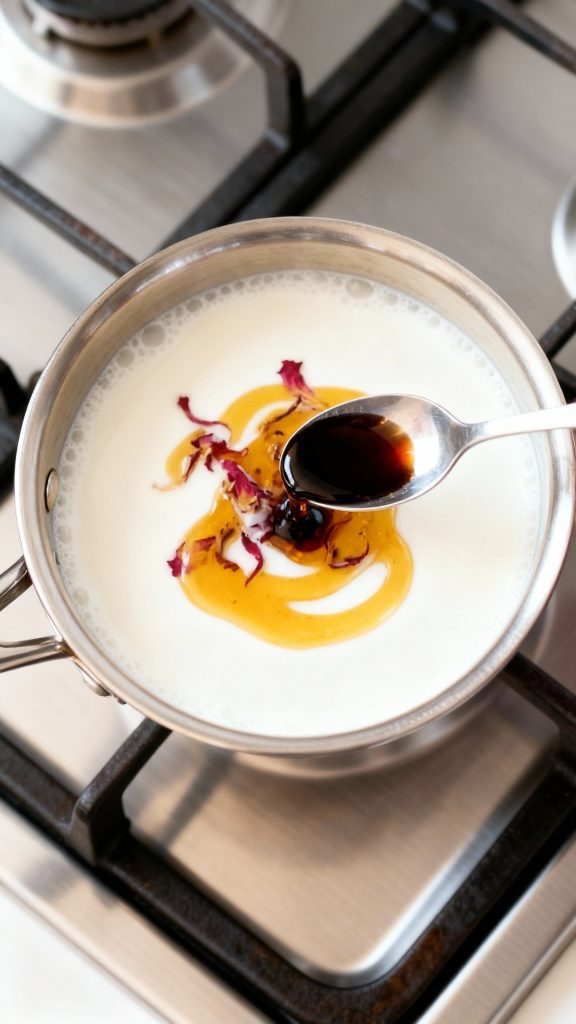Milk proteins stretch and trap air when heated and whisked, creating foam. Honey dissolves better in warm liquid than cold. Rose petals release essential oils when steeped, giving that light floral flavor without needing artificial stuff.