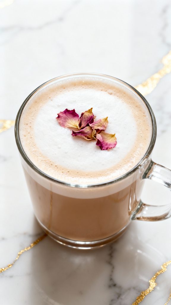 This rose vanilla latte feels like a warm hug in a mug. It’s smooth, creamy, lightly floral, and just sweet enough. I started making this when I wanted a cozy drink that felt a little special—but still easy to make at home.