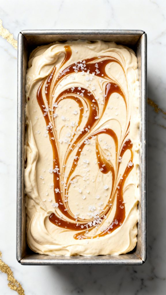Use a spoon or butter knife to gently swirl the caramel through the mixture. Sprinkle 1/2 teaspoon flaky sea salt across the top.