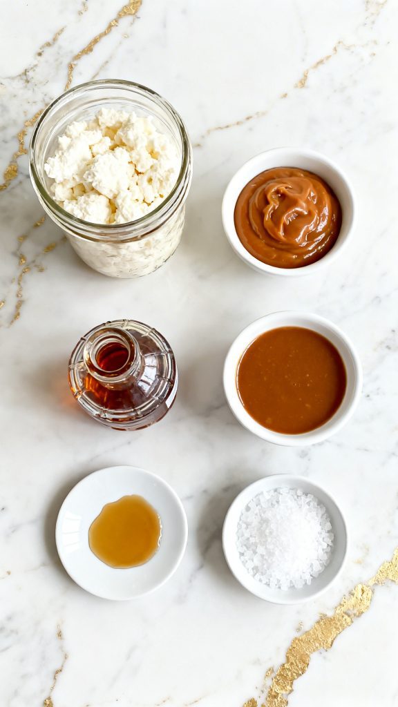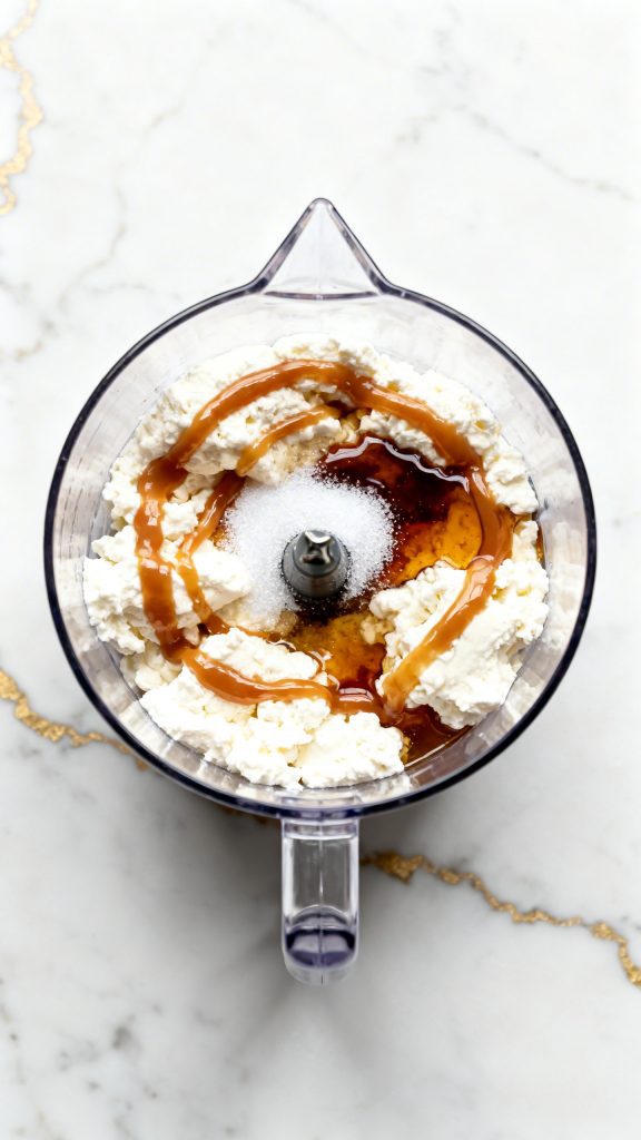 Add 2 cups full-fat cottage cheese, 1/3 cup thick caramel sauce, 2 tablespoons maple syrup, 1 teaspoon vanilla extract, and 1/4 teaspoon fine sea salt to your blender.