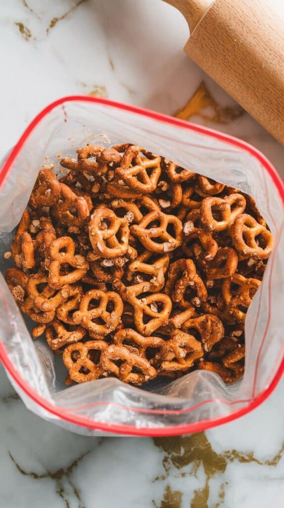 - Crushed pretzels: They add texture and a toasty, nutty flavor.