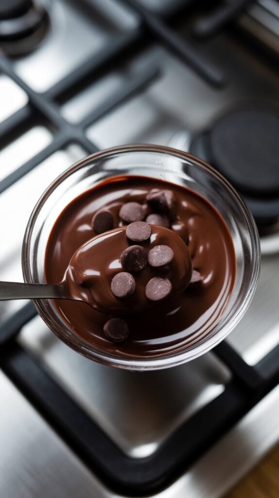 Melt dark chocolate chips in the microwave in 15-second bursts, stirring between each.