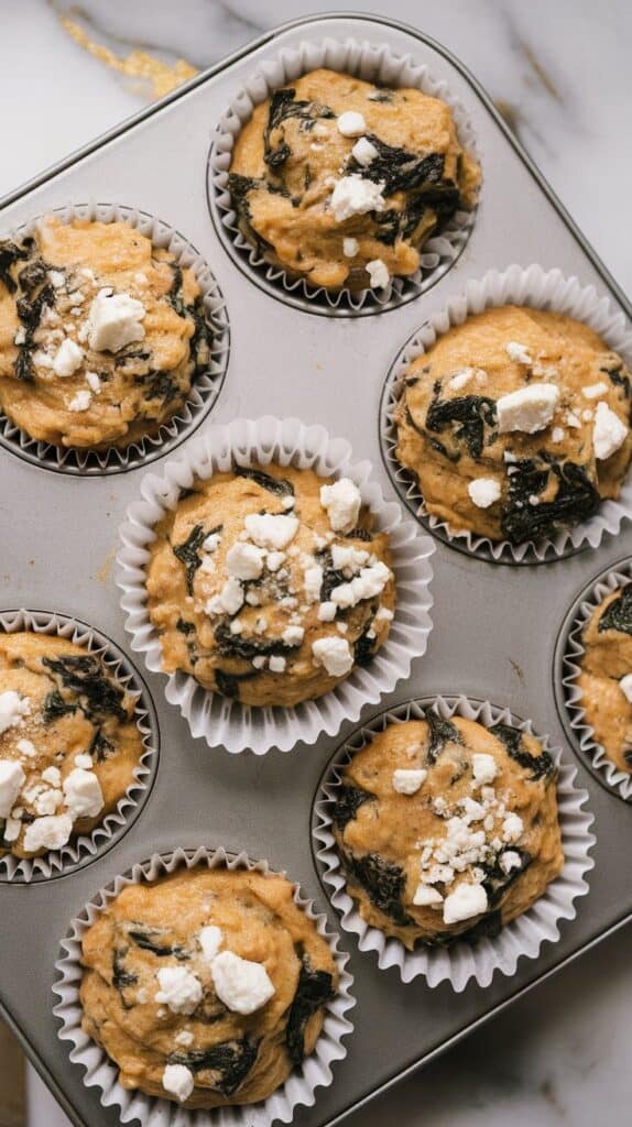 - Not wilting the spinach first – Raw spinach releases water while baking and makes muffins soggy.