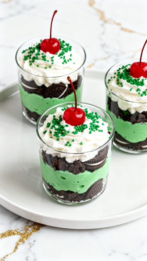 I made these once on a whim for a St. Patrick’s Day potluck and they were gone in 10 minutes flat. People loved how they looked—and then were surprised how much they loved how they tasted. The mint flavor is just enough, the pudding is silky, and the cookie crumbs add a nice little crunch.