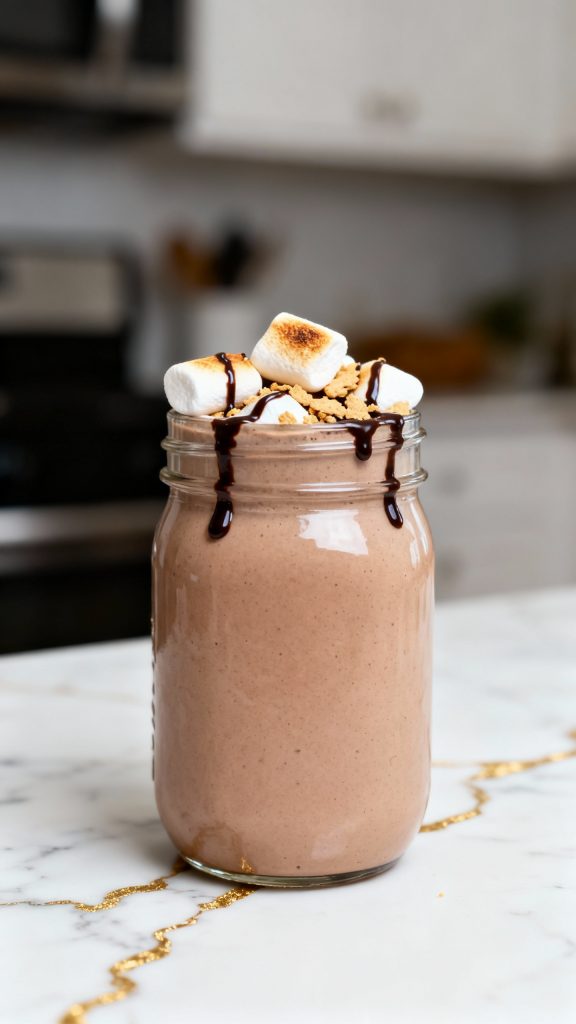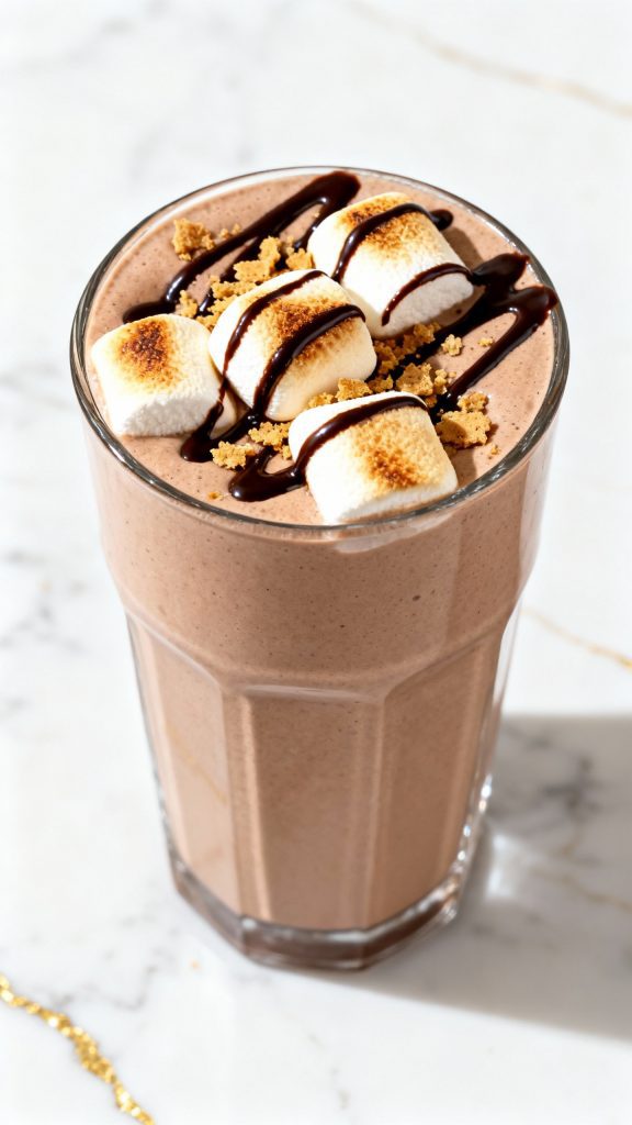 We’re talking toasted marshmallow vibes, a hint of graham cracker, and rich chocolate, all blended into a frosty shake that’s secretly packed with protein.