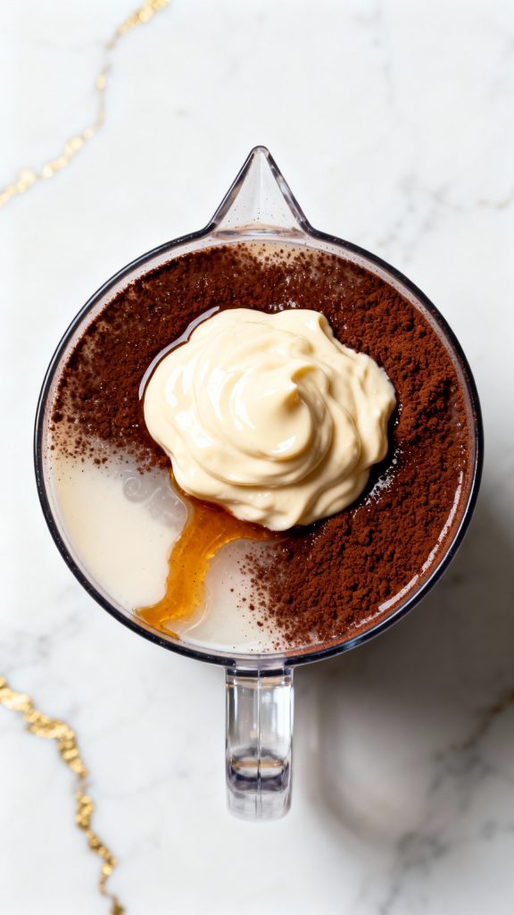 Add 1 tablespoon cocoa powder, 1/4 teaspoon vanilla extract, and 1 tablespoon Greek yogurt (optional for creaminess).