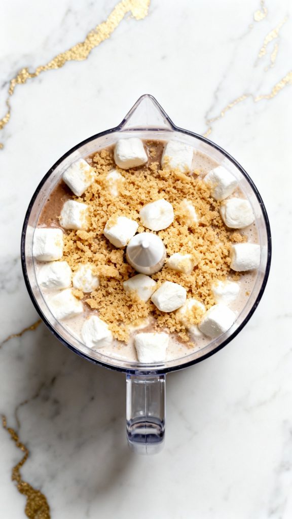 The protein powder gives it body and structure. The Greek yogurt (if you use it) adds creaminess and balances sweetness. Cocoa + vanilla = deep chocolate flavor. Crushed graham crackers give that campfire crunch. And blending sugar-free marshmallows in brings that toasted flavor, especially if you toast a few first.