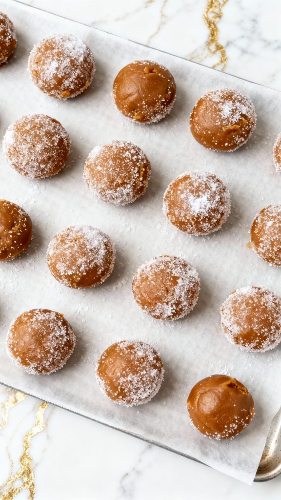 Place the sugar-coated dough balls 2 inches apart on a baking sheet lined with parchment paper. Bake at 350°F (175°C) for 8–10 minutes until puffed and slightly cracked.