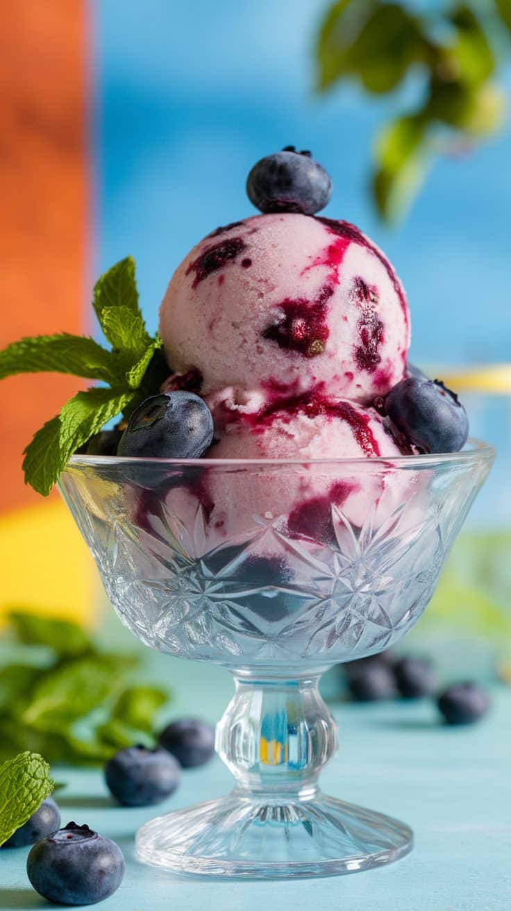Blueberry Bliss Sorbet is a refreshing treat that bursts with flavor. It blends sweet blueberries with a hint of tartness, making it perfect for hot days. Enjoy it on its own or topped with fresh blueberries for an extra touch!