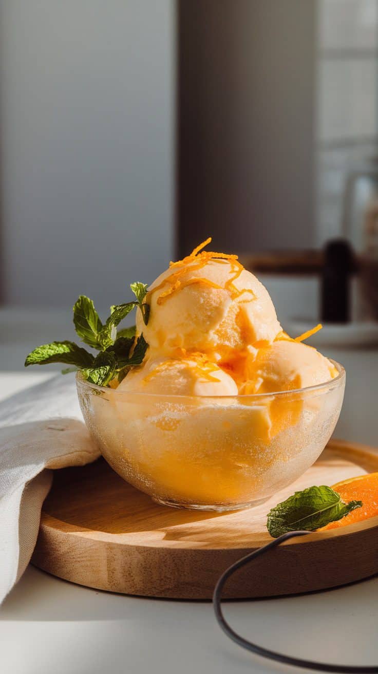 Orange Cream Sorbet is a refreshing treat that’s perfect for warm days. This simple recipe combines the zesty flavor of oranges with a creamy texture that makes it irresistible. Serve it in a chilled bowl and enjoy a burst of citrus goodness!