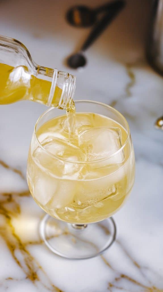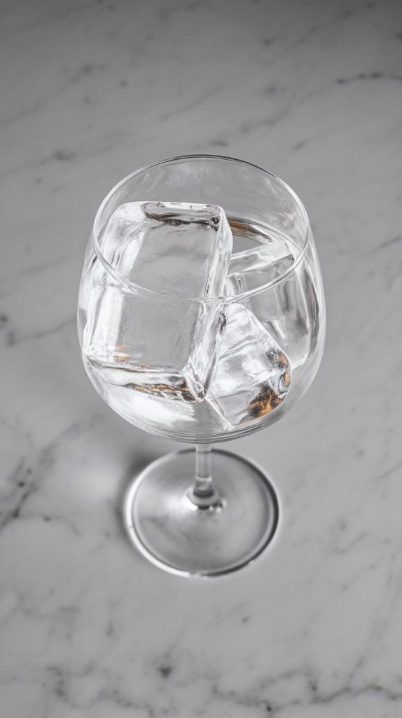 Fill a pretty glass with ice cubes. This keeps everything super chilled and crisp.