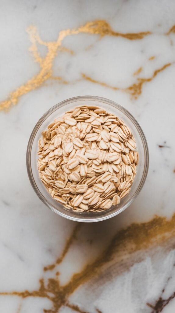 Add 1/2 cup old-fashioned rolled oats to a mixing bowl.