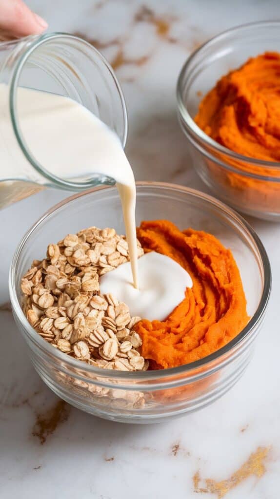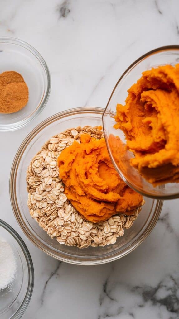 Add 1/2 cup mashed sweet potato (cooled) to the oats.