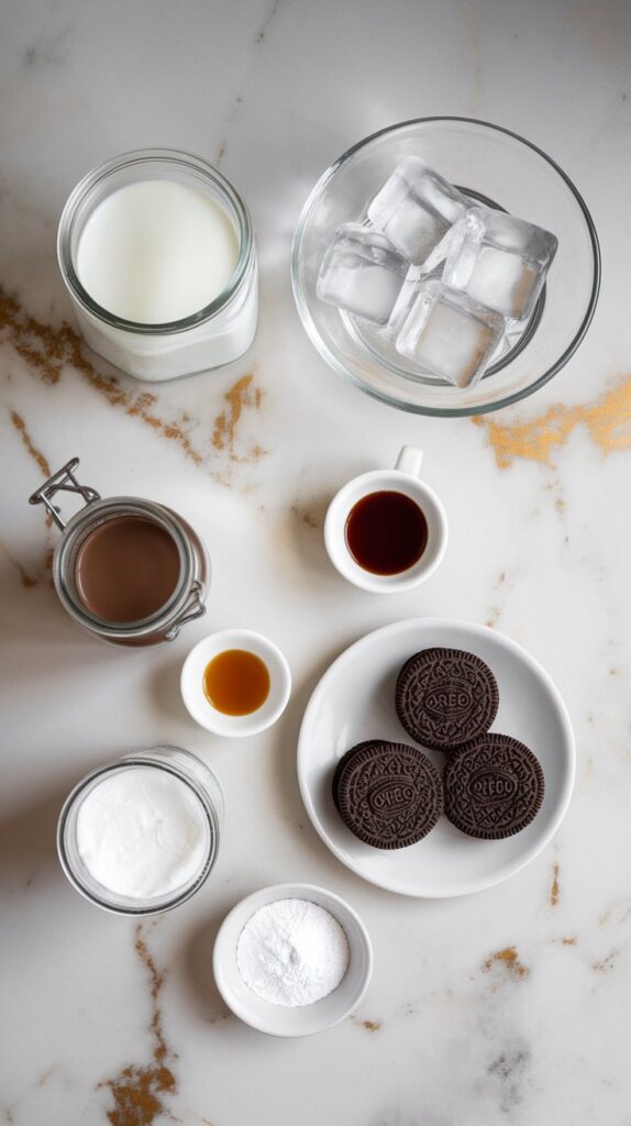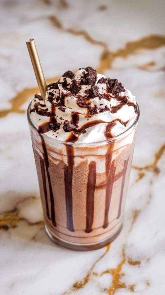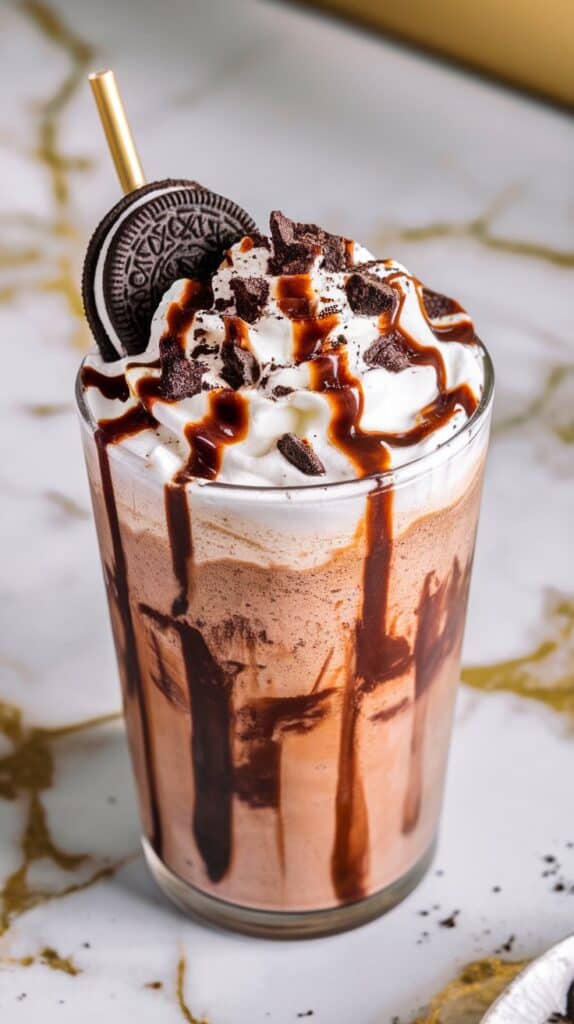 The combo of ice and milk gives it that classic frappuccino texture when blended—smooth but thick. Using cooled brewed coffee adds depth without watering it down. Chocolate syrup blends smoothly and adds richness, while the Oreos give it the right texture and a punch of cookie flavor. The pinch of salt enhances all the chocolatey notes.