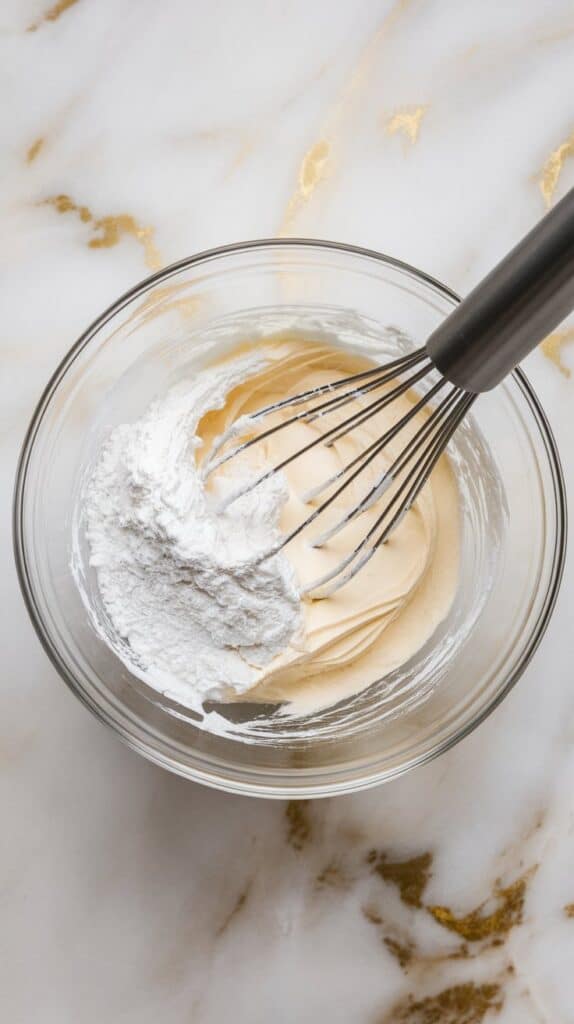 In a small bowl, combine ¼ cup heavy whipping cream and 1 tbsp powdered sugar. Whisk until soft peaks form.