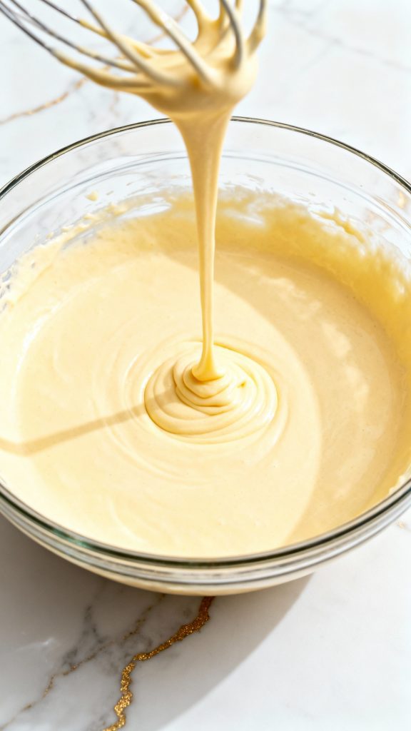 Add 2 large eggs one at a time, mixing well after each. Then mix in 1 tsp vanilla extract.